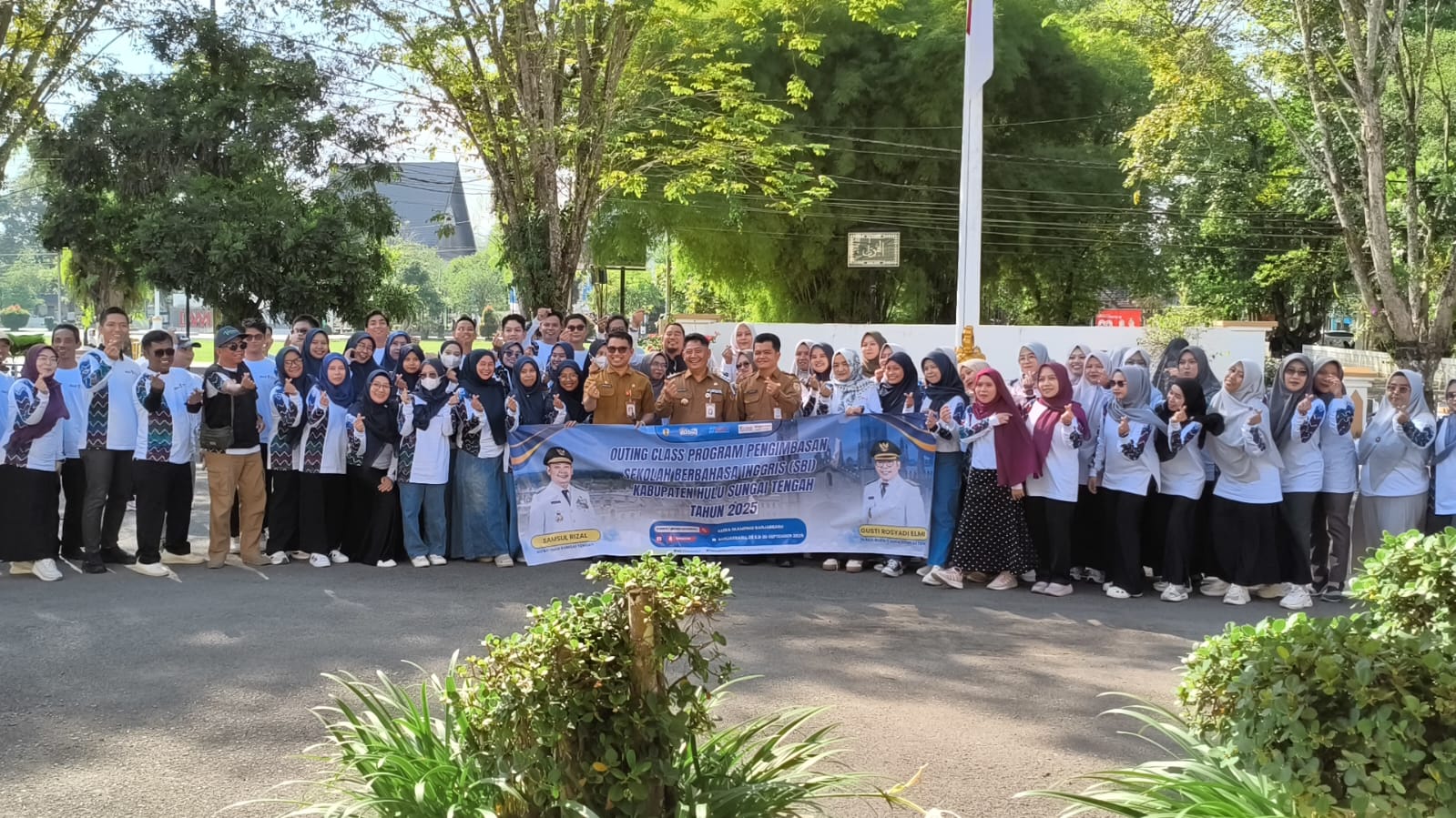 Baritorayapist.com,HULU SUNGAI TENGAH – Pemerintah Kabupaten Hulu Sungai Tengah (HST) melalui Dinas Pendidikan fasilitasi 75 guru SD dan SMP ikuti kegiatan Outing Class Pengimbasan Program Sekolah Berbahasa Inggris (SBI). Rombongan guru ini dilepas secara langsung oleh Bupati HST, Samsul Rizal di Halaman Kantor Bupati, Senin (29/9/2025).
