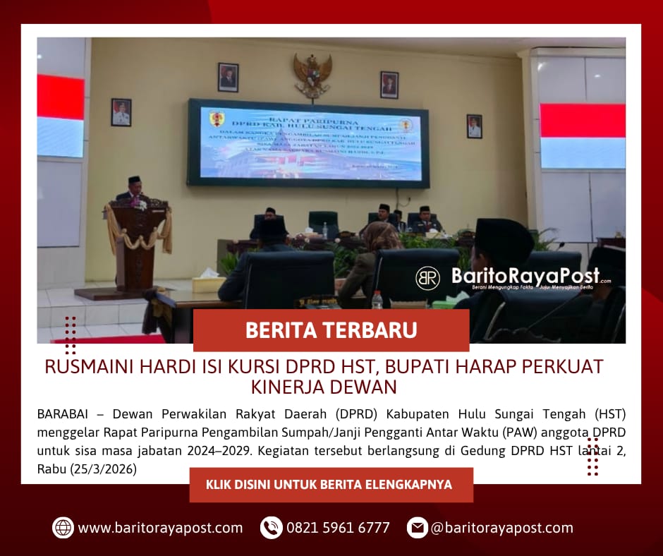 Baritorayapost.com,BARABAI- DPRD Kabupaten Hulu Sungai Tengah (HST) menggelar Rapat Paripurna Pengambilan Sumpah/Janji Pengganti Antar Waktu […]