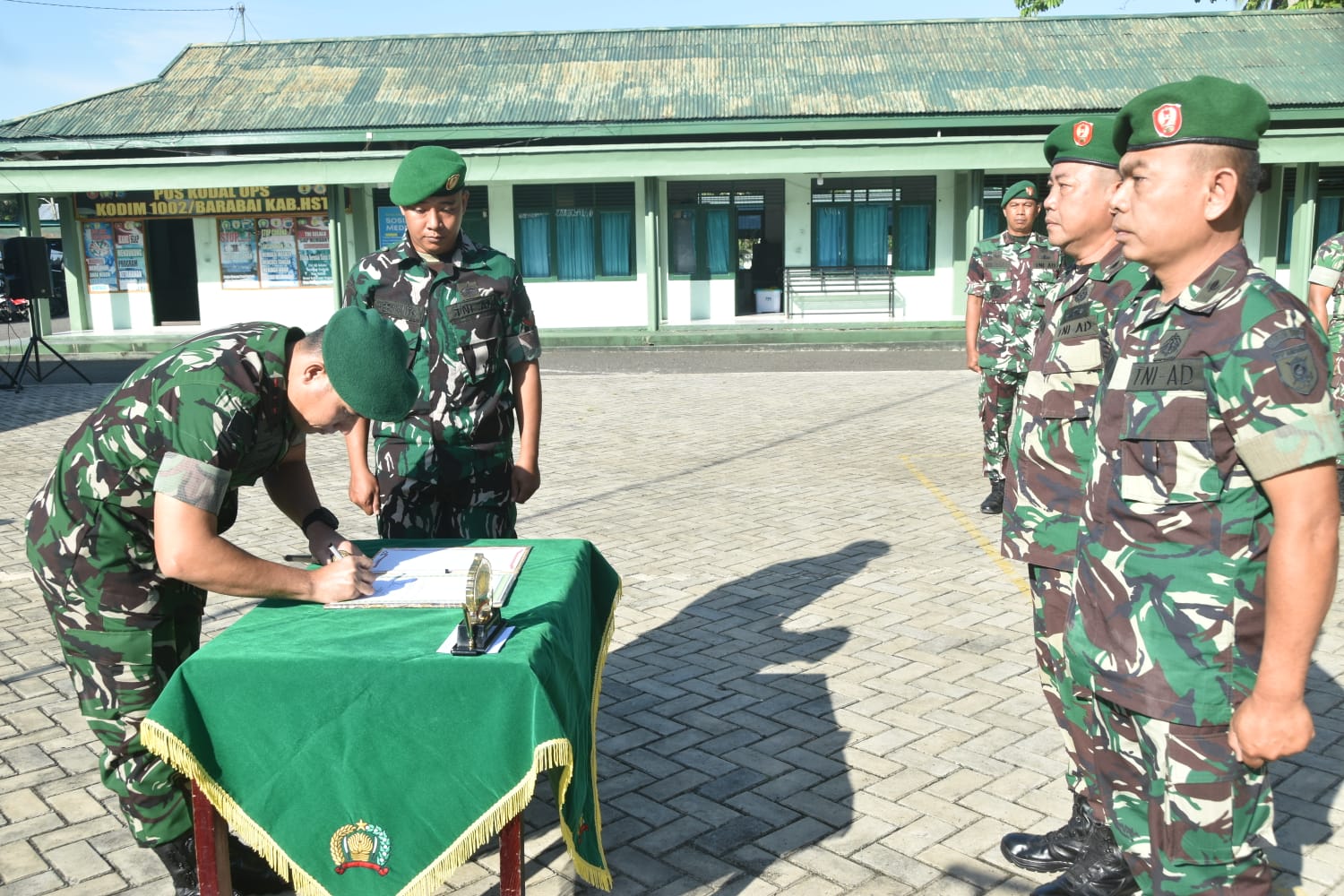 baritorayapost.com,BARABAI – Kodim 1002/Hulu Sungai Tengah (HST) menggelar upacara Korps Raport Purna Tugas dan Serah Terima Jabatan (Sertijab) personel di Lapangan Makodim 1002/HST, Selasa (23/9/2025) pagi.