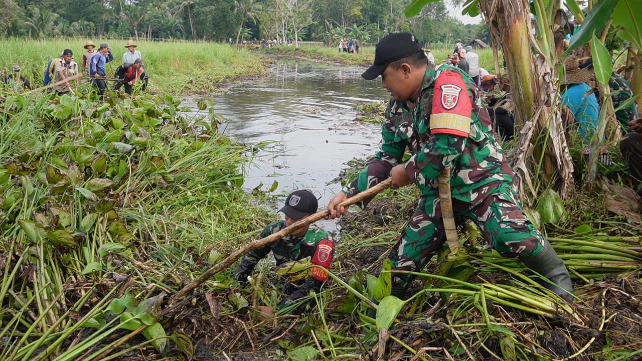 Kegiatan karya bakti ini melibatkan personel Kodim 1002/HST bersama aparat desa, warga setempat, dan unsur terkait lainnya. Pembersihan dilakukan di sepanjang aliran sungai guna menjaga kebersihan lingkungan, kelancaran aliran air, serta mencegah terjadinya banjir saat musim hujan.