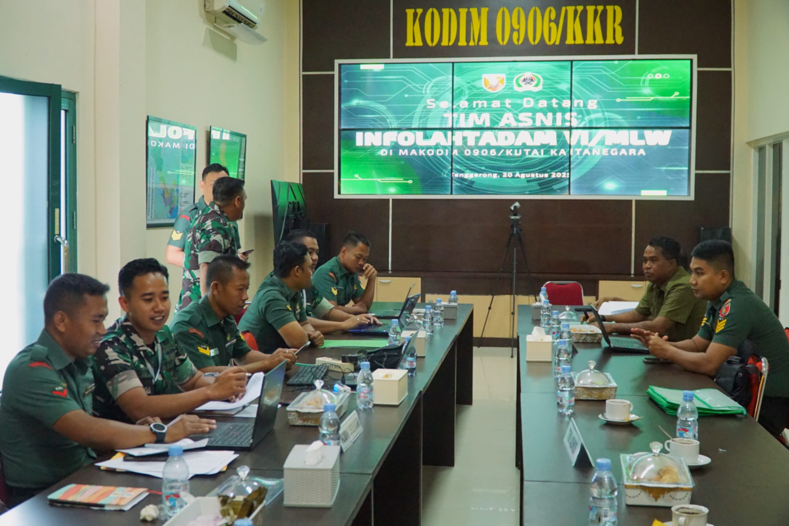 Kutai Kartanegara, baritorayapost.com– Komandan Kodim (Dandim) 0906/Kutai Kartanegara (Kkr), Letkol Czi Damai Adi Setiawan, S.I.P., M.I.P, didampingi para Perwira Staf Dim 0906/Kkr menerima kunjungan kerja Tim Asistensi Teknis (Asnis) Informasi dan Pengolahan Data Kodam (Infolahtadam) VI/Mulawarman di Makodim 0906/Kkr yang berada di Jalan KH. Ahmad Mukhsin Kelurahan Timbau Kecamatan Tenggarong, Kukar. Rabu, (20/8/2025).