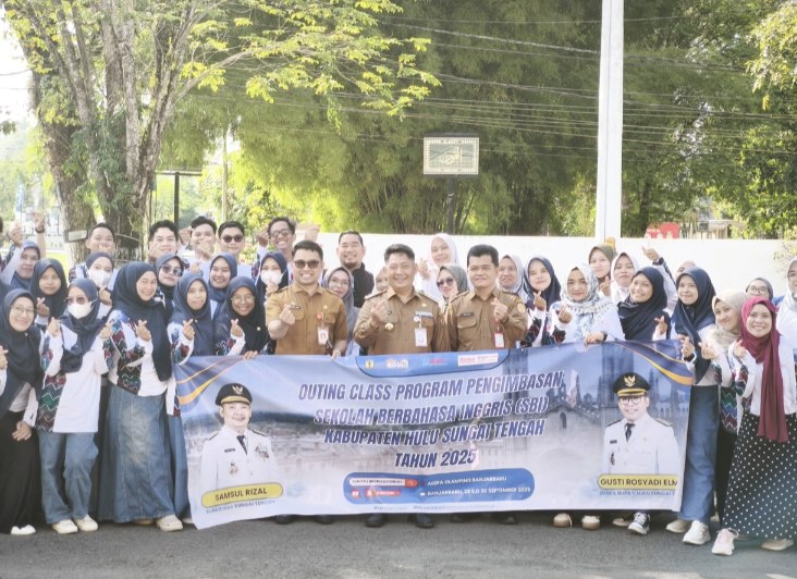 Baritorayapost.com,BARABAI, Sebanyak 75 guru dari Kabupaten Hulu Sungai Tengah (HST) resmi diberangkatkan untuk mengikuti kegiatan Outing Class Program Pengimbasan Sekolah Berbahasa Inggris (SBI).
