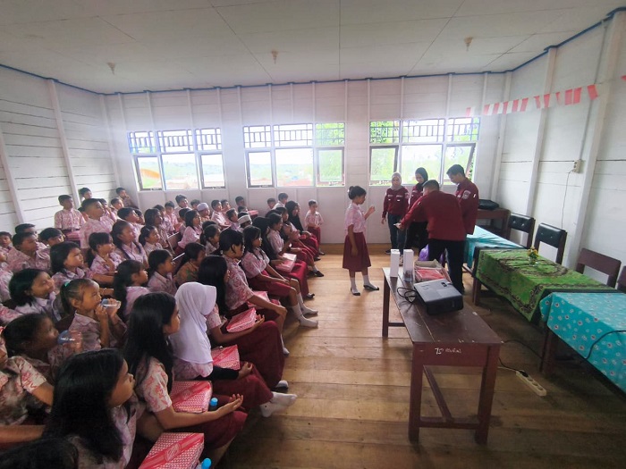 Kunjungan tersebut dilakukan guna melakukan sosialisasi sekaligus mengedukasi para siswa siswi sekolah dasar bagaimana pentingnya menjaga kebersihan lingkungan sekolah, khususnya terhadap sampah plastik.