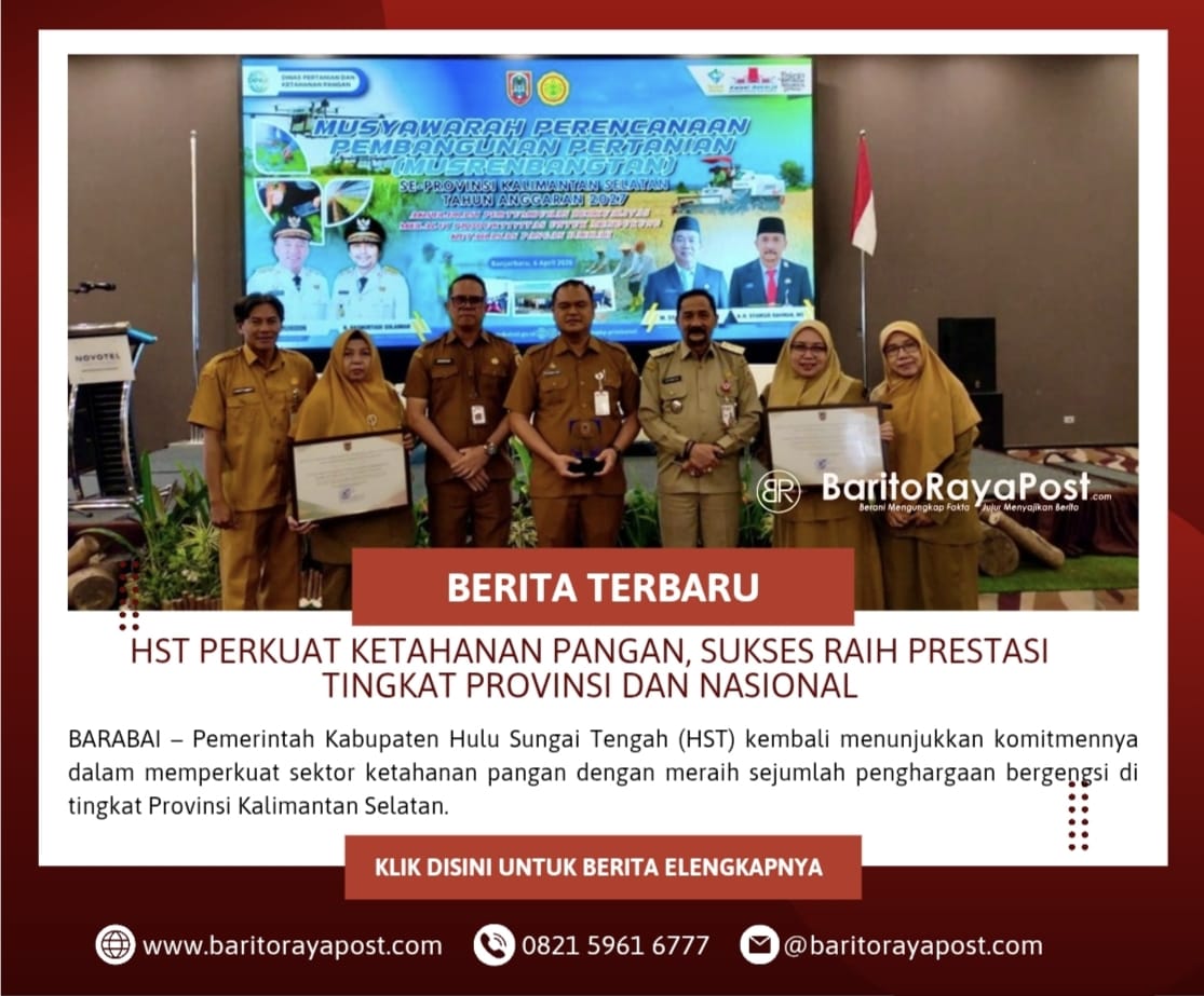 Baritorayapost.com,BARABAI – Pemerintah Kabupaten Hulu Sungai Tengah (HST) kembali menunjukkan komitmennya dalam memperkuat sektor ketahanan pangan dengan meraih sejumlah penghargaan bergengsi di tingkat Provinsi Kalimantan Selatan.
