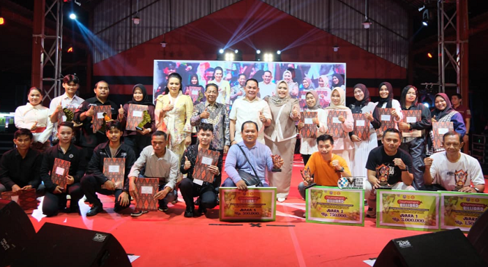 Acara malam hiburan juga dirangkaikan dengan pengumuman para pemenang lomba dalam rangka HUT Ke-80 RI sekaligus penyerahan hadiah.
