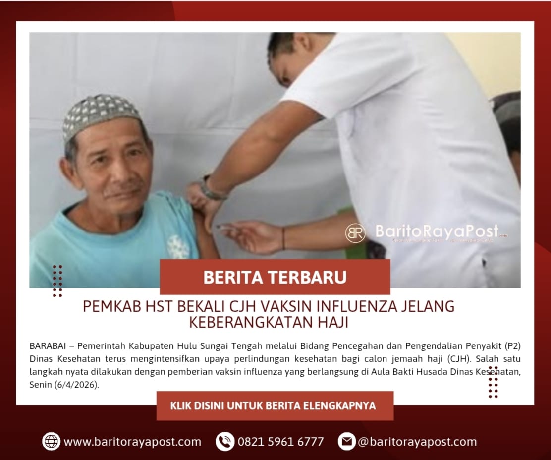 Baritorayapost.com,BARABAI – Pemerintah Kabupaten Hulu Sungai Tengah melalui Bidang Pencegahan dan Pengendalian Penyakit (P2) Dinas Kesehatan terus mengintensifkan upaya perlindungan kesehatan bagi calon jemaah haji (CJH). Salah satu langkah nyata dilakukan dengan pemberian vaksin influenza yang berlangsung di Aula Bakti Husada Dinas Kesehatan, Senin (6/4/2026).