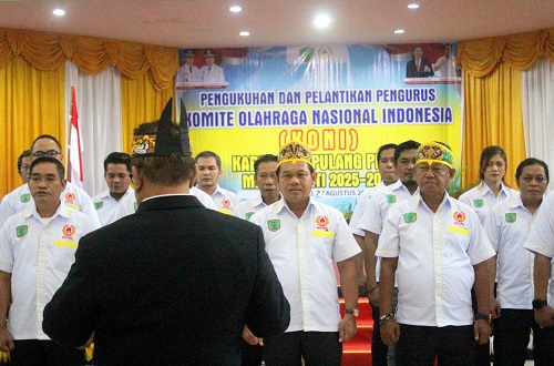 Prosesi pelantikan Pengurus KONI Kabupaten Pulang Pisau yang dinakhodai Ketua Migohartaku dipimpin langsung Ketua Umum KONI Provinsi Kalimantan Tengah, Rahman Hidayat.