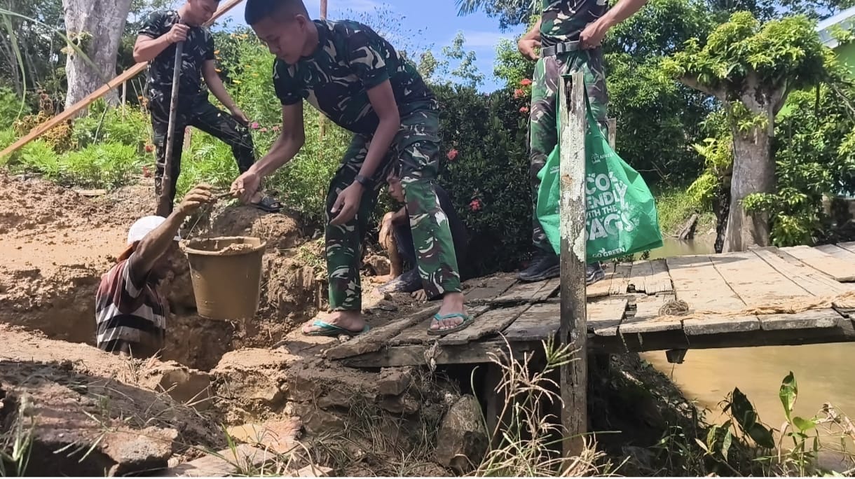 Gotong Royong TNI-Rakyat Percepat Pembangunan Jembatan Garuda di Batu Benawa