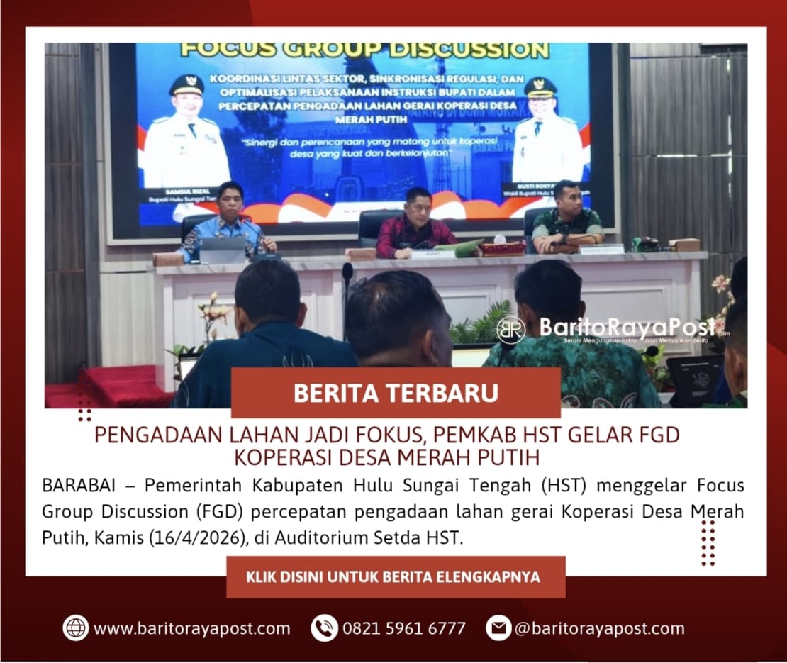 Baritorayapost.com,BARABAI – Pemerintah Kabupaten Hulu Sungai Tengah (HST) menggelar Focus Group Discussion (FGD) percepatan pengadaan […]