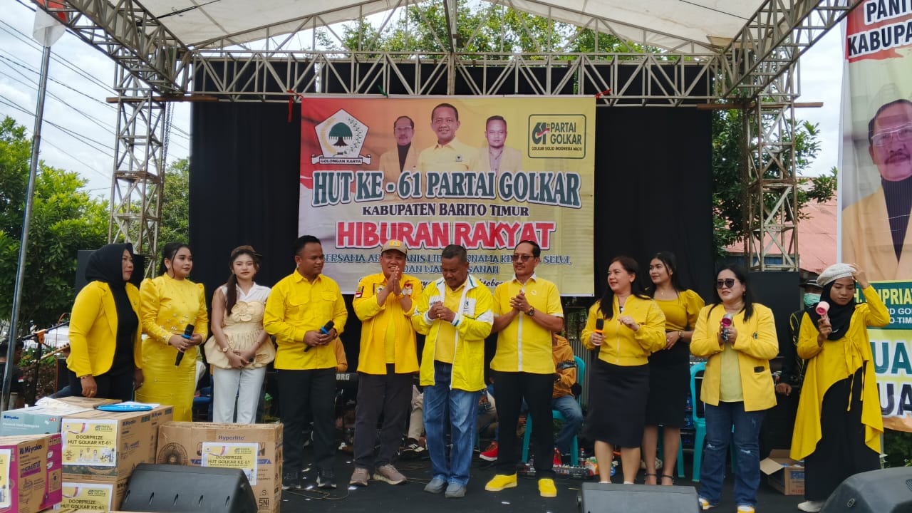 baritorayapost.com, BARITO TIMUR – Memperingati Hari Ulang Tahun (HUT) ke-61 Partai Golkar yang diikuti seluruh Pengurus Dewan Pimpinan Daerah (DPD) Partai Golongan Karya (Golkar) Kabupaten Barito Timur dengan menggelar acara Hiburan Rakyat dan pembagian doorprize. Ketua DPRD Bartim apresiasi antusias masyarakat yang turut serta memeriahkan kegiatan yang berlangsung meriah di halaman kantor Golkar setempat pada Minggu, (19/10/2025)