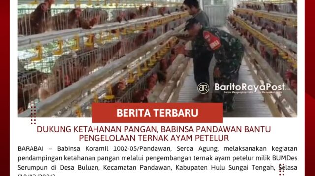 Baritorayapost.com,BARABAI – Babinsa Koramil 1002-05/Pandawan, Serda Agung, melaksanakan kegiatan pendampingan ketahanan pangan melalui pengembangan ternak […]
