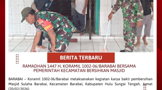 BARITORAYAPOST.COM,BARABAI – Koramil 1002-06/Barabai melaksanakan kegiatan karya bakti pembersihan Masjid Sulaha Barabai, Kecamatan Barabai, Kabupaten […]